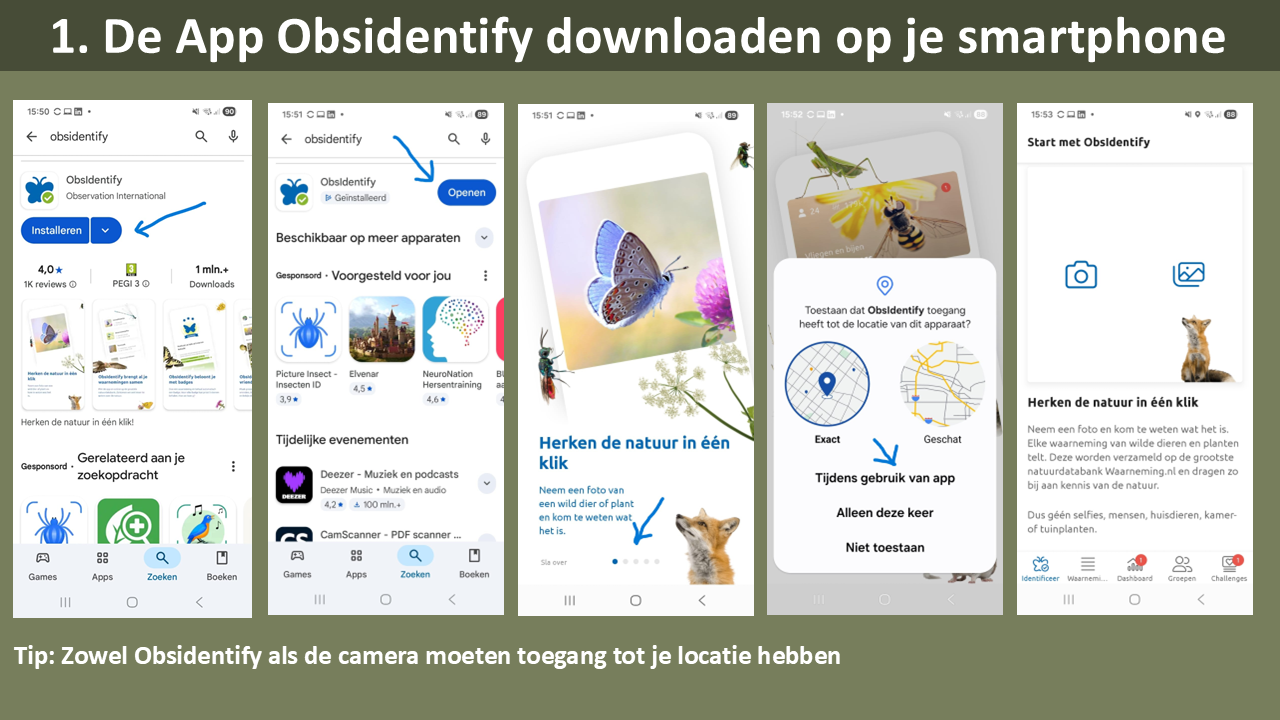 1.Download de App Obsidentify op je smartphone (zie ook bijgaande afbeeldingen)